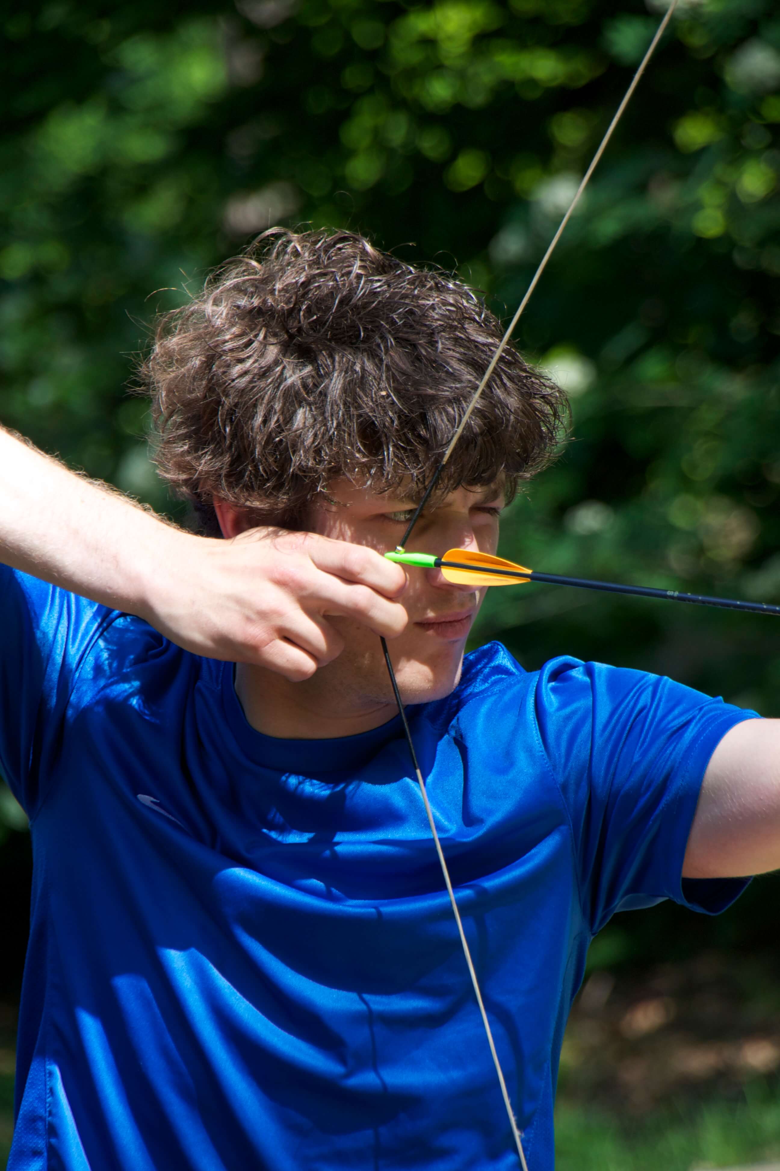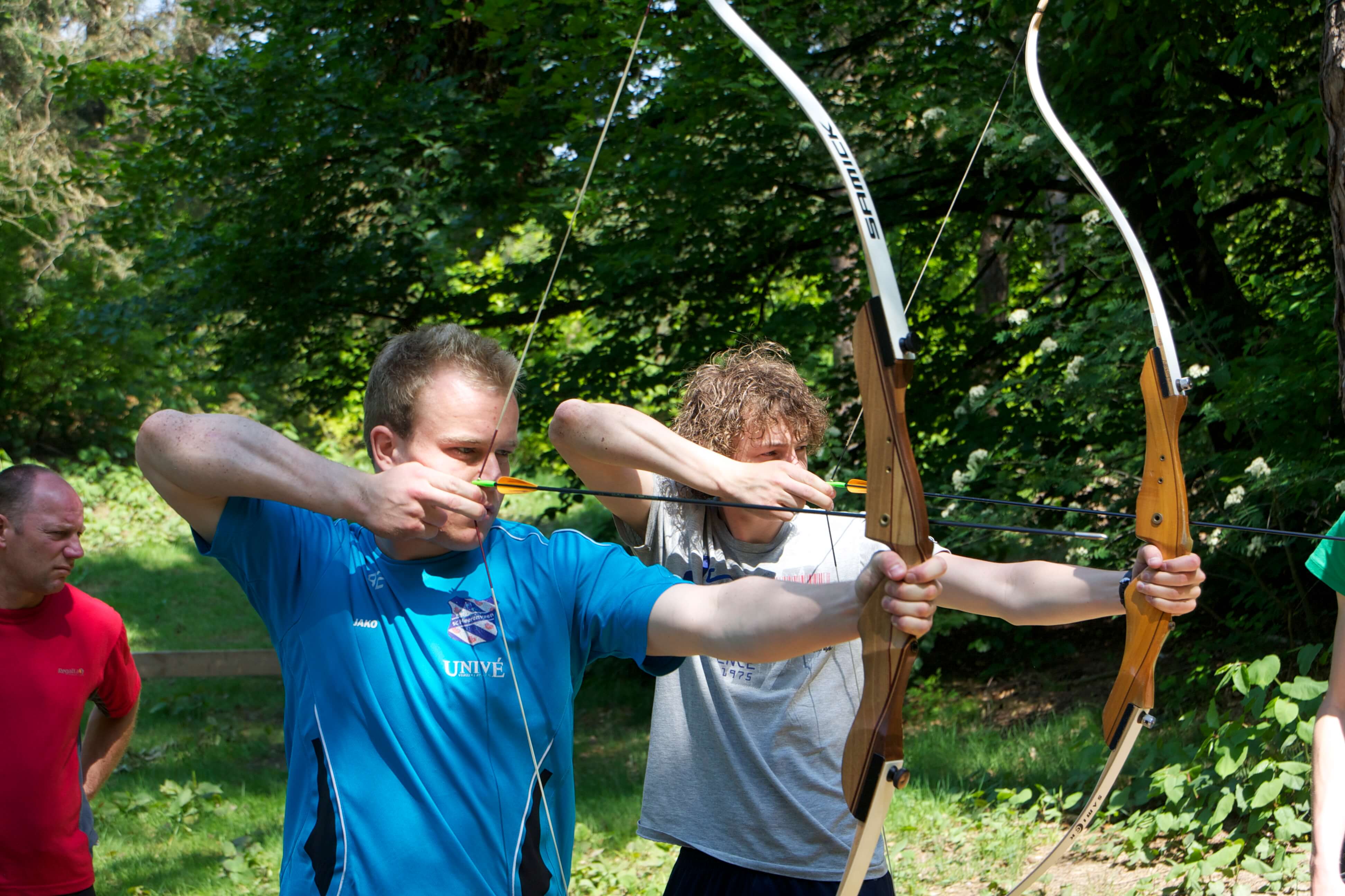 De ene helft start met handboogschieten